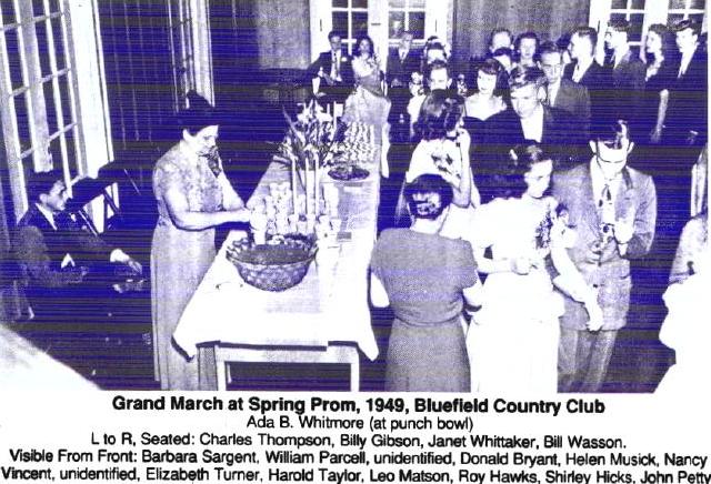 Bramwell High School 1949 Junior Senior Prom. Some might even recognize Beulah Tote, the young lady in the center of the picture with her hand to her face. ( Photograph from Ward L. Cole, BHS Class '51 ) |