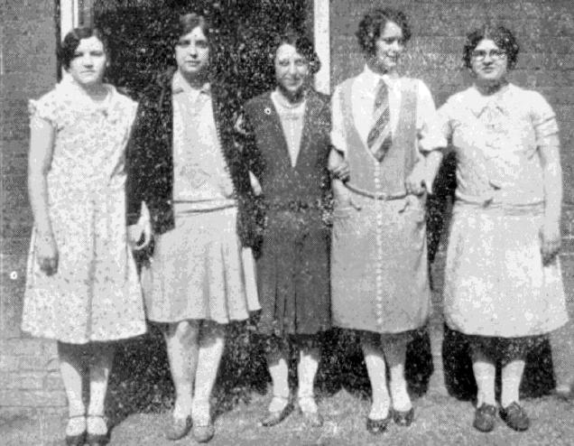 This photograph is from the 1928 BHS Pinnacle Year Book. It features the Bramwell's first Girls' Quartet that was directed by Miss Tapert. In 1924 - 25 a Boys' Quartet had been formed consisting of Wilbur Brooks, Edward Rhodes, Leo Craft and Edward Woods. In 1926 - 27 another Boy's Quartet was formed and consisted of Ralph Cowan, Neno Gross, Leo Haynes and Bill Brown. In 1928 a BHS Band was organized and is also featured on "Out-Of-The-Attic" Index page.