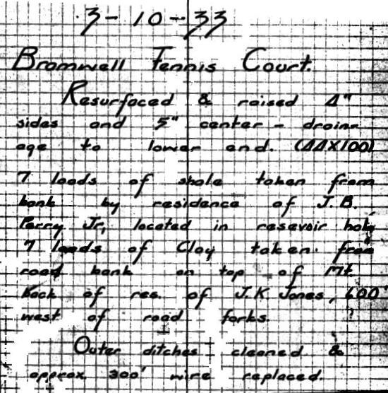 This is the invoice for the repair of the Bramwell Tennis Court from 1933. Note who did the work and the cost of the repair.