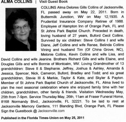 Alma and her husband, BUFORD COLLINS were both Bramwell High School Class '53 graduates..