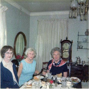This photograph features ( L - R ) Miss Kirk Asbury, Mrs. Alma Baume and Mrs. Nancy Vest Jones at a luncheon in Mrs. Baume's home in Historic Bramwell.