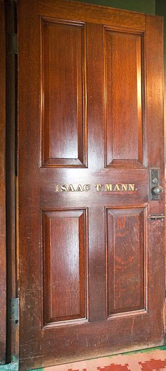 Door in Bramwell Bank leadig up to Isaac T. Mann's quarters. |