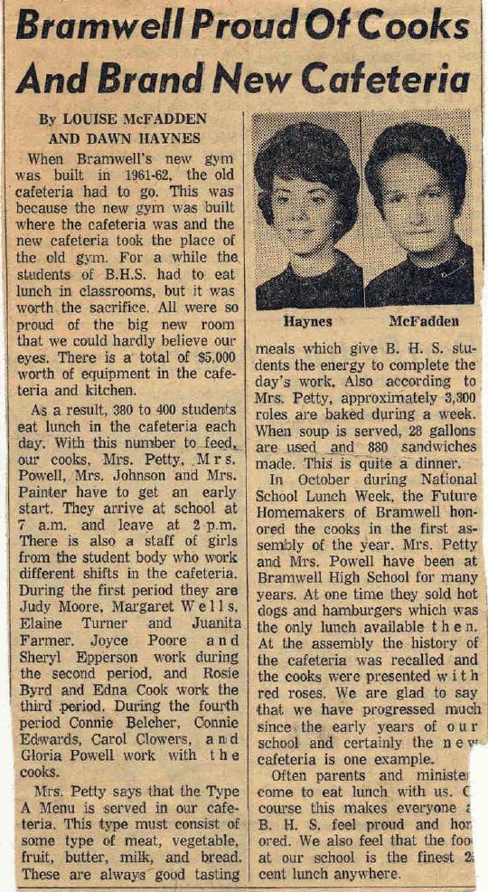 Article was written by Bramwell High School students Louise McFadden and Dawn Haynes. It appeared in the Bluefield Daily Telegraph on Sunday, January 26, 1964.