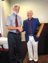 Edward Bowman receives congratulations from Dr. Billy Martin, Department Chairman.