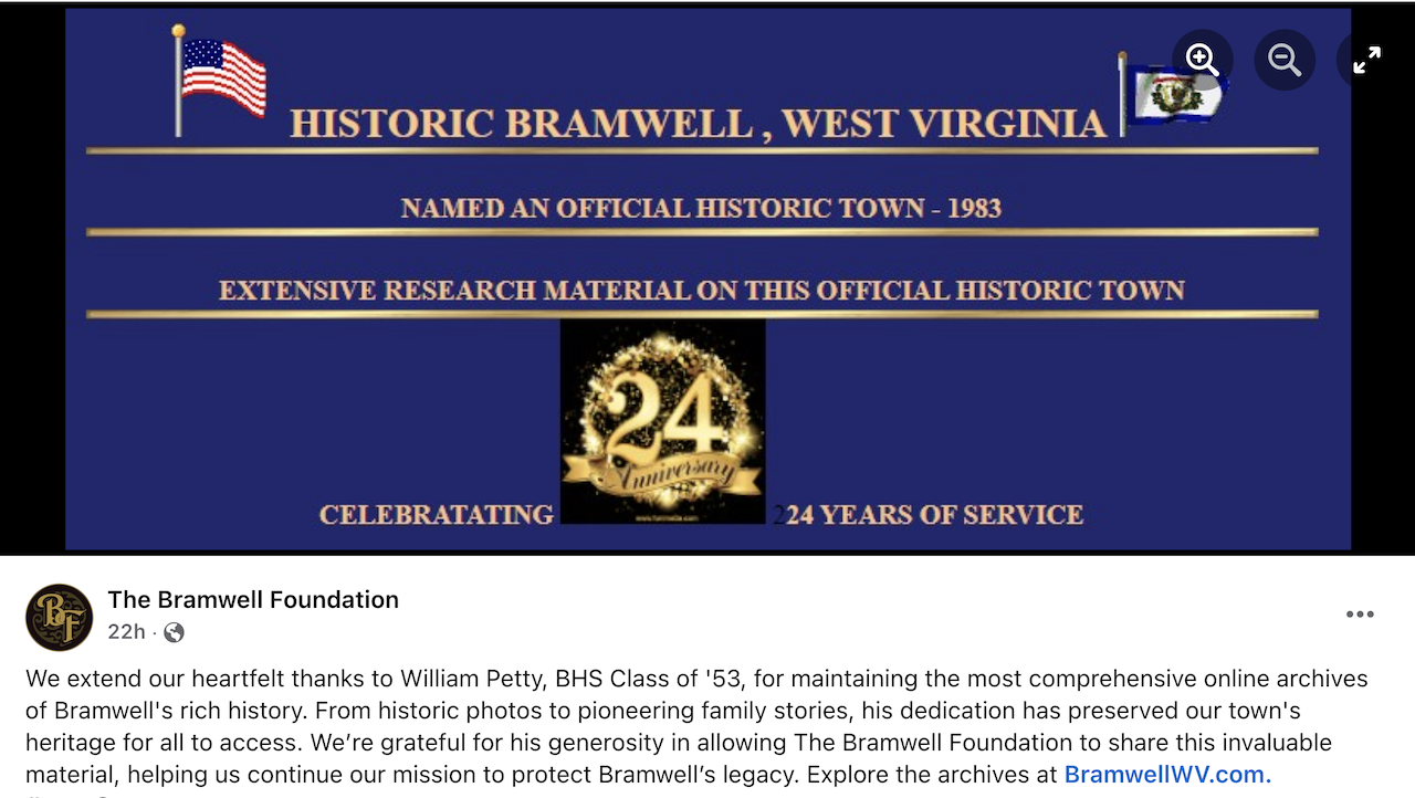 From this page YOU are invited to visit and "enjoy" the many Historic Bramwell links listed below .