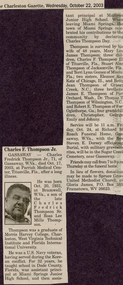 IN MEMORIAM - CHARLES F. THOMPSON, JR.