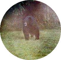 This black bear weights approximately 400 lbs. and is probably an adult male because of the large size. He was seen visiting the Autumn Haze Farm during the late evening hours of 25 May 1999. It is believed that the bear has a den close by because he has been seen in the area by others and there are signs of previous visits to the farm throughout this Spring. While it is common to see signs of bears here, it is uncommon to see one this large in the open and so close to the Farm House. At the time the picture was taken this bear was stalking the Autumn Haze Farm "Guineas" birds and quite a noise was heard coming from the guineas. However, they did not retreat from the area.