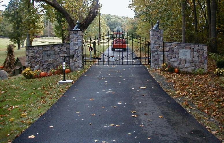 Chestnut Oak estate entrance in Fall Season. Gate Design: William Petty -- Stone Work: Tony Jenkins.