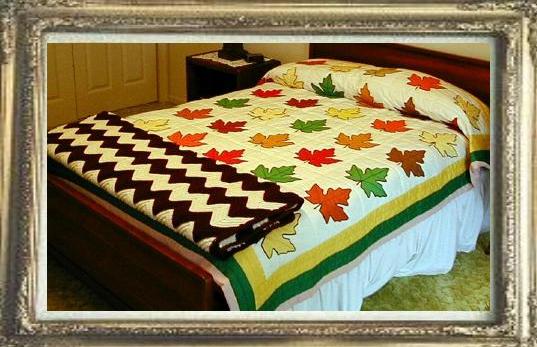 This "Oak Leaf " quilt and afghan are samples of over 100 quilts and 40 afghans that Mrs. Petty made since making her first quilt in 1940. Additional samples of her work can be found @: http:/www.bramwellwv.com/chestnut/webquilts.html |