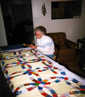 be passed down from one generation to the next. Quilts featured here were made by Avis Petty. The "Church Window" quilt had some contributions by the women of the Bramwell Methodist Church and this quilt was donated by these women to church to raise funds. The "Dutch Girl" and "Daisey" quilts were made by Mrs. Petty in the 1980s. These quilts are representative examples of her workmanship in making quilts. |