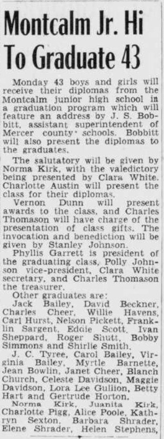 BRAMWELL HIGH SCHOOL CLASS '52