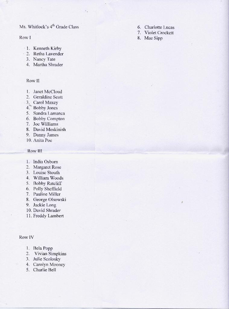 This picture is available thanks to Kenny and Betty Kirby. All the names are furnished by Miss Whitlock.