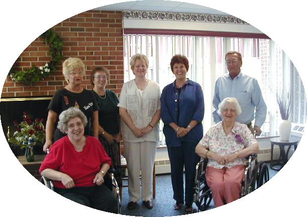 ![]() Bramwell High School Class '61 Fortieth Class Reunion. Photograph features ( L - R ): Kay Gross, Billie Mae Morgan, Sue Buckner, Reta Phillips, Linda Estep, Jerry Jones, and Mrs. Gross. ( Photograph by Reta Philips Hill. BHS Class '61 ) |