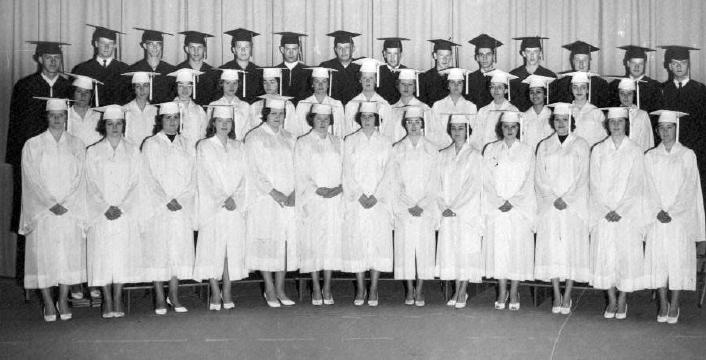 Bramwell High School Class of 1963 Top ( L - R ): David Martin, Jerry Carver, David Sharpe, Teddy Walter, Grant Allen, Charles Harrison, Ronald Belcher, Clarence Roberts, James ODonnal, Don Corner, James Terry, Dick Belcher, Kenneth Osborn, Terry Short. Middle: Linda Mitchell, Barbara Jarrett, Doris Goodwin, Judy East, Esther Walker, Shirley Davidson, Betty Carter, Mary Katherine Hill, Pat Wade, Gail Byrd, Brenda Meade, JoAnn Godbey, Bonnie Evans, Front : Liz Lawson, June Call, Ruth East, Betsy Vest, Pat Spicer, Betty Sue Brown, Ila Davis, Susan Lance, Weesie McNulty, Carol Evans, Claudette York, Betty Buckner, Anna Sue Mahaffey. Not identified in photograph: Judy Gillenwater Belcher. ( Photograph furnished by Louise "Weesie" McNulty Gibson. BHS Class '63 ) |