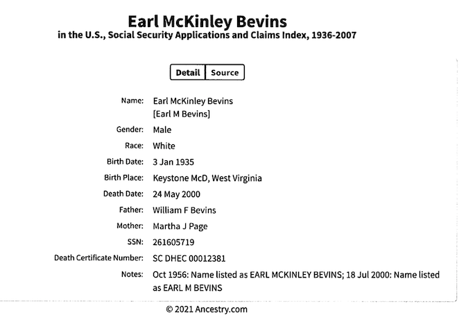 At present no significant material is available to post on Earl Bevin's life. It is believed that Earl Bevins died in Moncks Corner, South Carolina. Earl M. Bevins last known address: 160 Rentiers Ln, Moncks Corner, SC 29461-7404