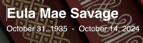 Eula Mae Savage, age 88, of Dagsboro, DE died Monday, October 14, 2024 at Jefferson University Hospital in Philadelphia. She was born on October 31, 1935 in Barnardsville, NC and was the daughter of the late Thel Shuford and Ellen (Hyatt) Shuford. She was a retired educator from the Indian River School District. She retired in 1998 after 45 years and taught also in Kentucky and Laurel, DE. She was a former member of the Dagsboro Town Council. Mae enjoyed retirement and liked to read, studying Egyptian Culture and spending time with her husband, son and granddaughter. She is survived by her husband, Earl Savage; a son, Bryan Savage and wife Jennifer of Wake Forest, NC; a granddaughter, Sydney Savage of Wake Forest, NC; a brother, Richard Shuford and wife Carolyn of Weaverville, NC; a sister, Suzanne Lawless of Knoxville, TN; a niece and two nephews. A funeral service will be held at 1:00 pm on Friday, October 18, 2024 at Bishop-Hastings Funeral Home in Selbyville. Friends may call an hour before the service. Burial will be in Prince George's Cemetery in Dagsboro.