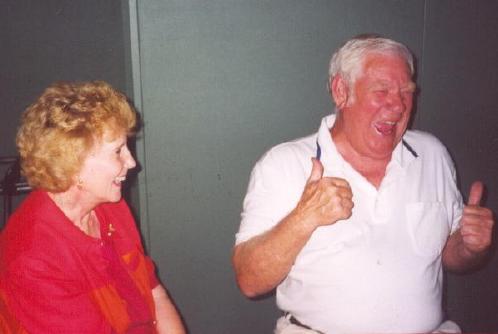 Dorothy Williams and Jim "Soybean" Shelton enjoy a good laugh at the "Oaks Supper Club" dinner held in Pipestem on 27 June 01.