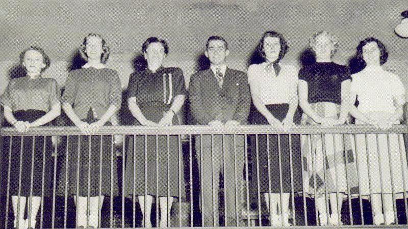 ( L - R ) : Anne Haynes, Betty Jo Martin, Miss Ada B. Whitmore, Hansel Tabor, Joyce O'Neil, Clara White, Louise Dawson.