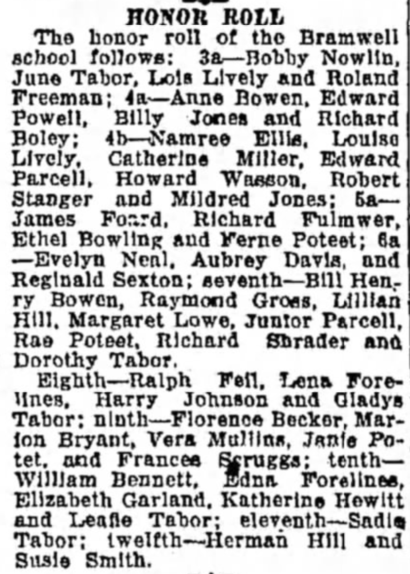 Bramwell High School Class '31 - INDEX FILE |