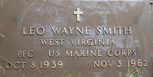 Leo Wayne Smith, a recently discharged Marine from Mercer County became McDowell County's 15th traffic victim when he was killed in a one-car accident in Upland early Saturday (Nov. 3, 1962). He was pronounced dead upon arrival at Stevens Clinic in Welch shortly after the 5 a.m. accident. Survivors include his parents, Mr.& Mrs. Otis Smith of Coopers; four brothers, Cecil Smith and Brady Smith of Fayetteville, N.C., Donald Smith of Elkhart, In. and Jerry Smith of the home; and a sister Connie Smith of the home. Funeral services will be conducted at the Coopers Methodist Church on November 5, with the Rev. W.P. Eastwood officiating. The body will be moved to the residence today at 1 p.m. and to the church 1 hour prior to the service. Pocahontas Union Funeral Home, Pocahontas, Va. is in charge of the services.