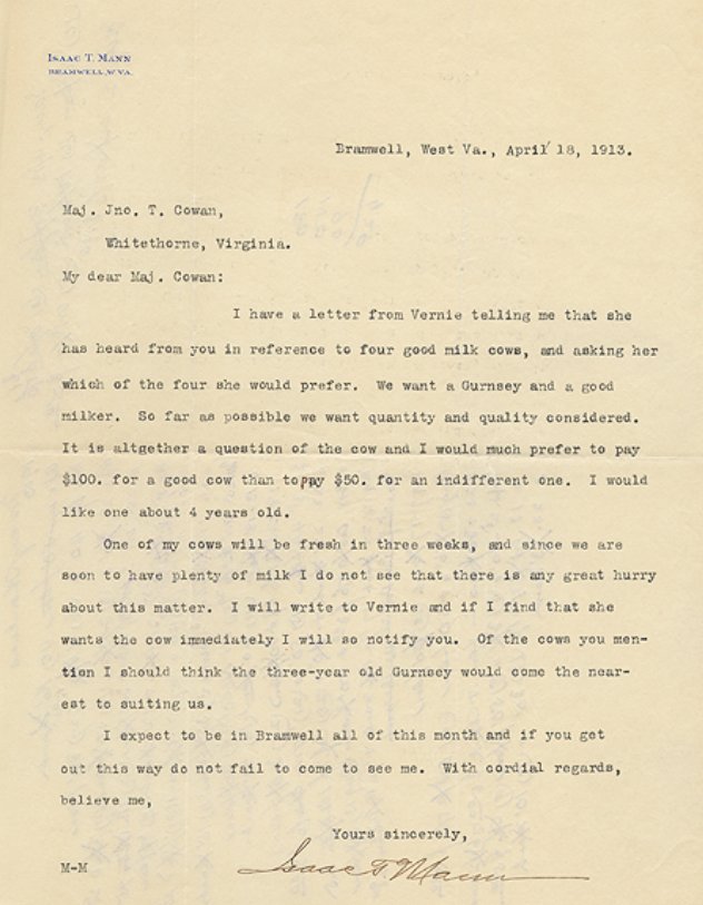 BRAMWELL, WV PIONEER ISAAC THOMAS MANN