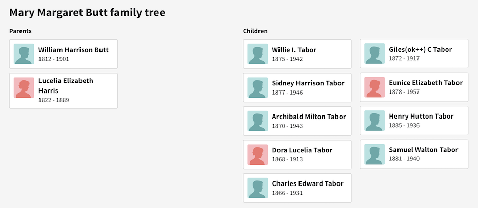 HENRY HARRISON TABOR - HUSBAND OF MARY MARGARET BUTT TABOR MARY MARGARET BUTT TABOR - "FIND-A-GRAVE" MORE INFORMATION ON MARY MARGARET BUTT TABOR