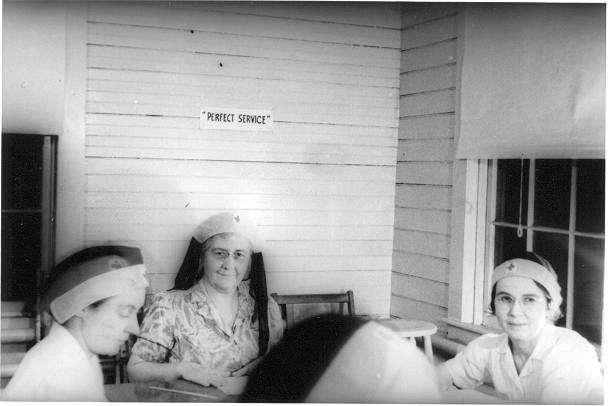 | Historic Bramwell pioneer Mollie Craft (center) shown in Bramwell working as a Red Cross nurse. Mollie N. Craft was born April 6, 1880 at Union Hall, Virginia. She was the daughter of Sarah Jane Lemon Craft. At an early age she moved to Bramwell, WV with her family and received her education in the Bramwell Schools, Concord College and graduated from St. Lukes School of Nursing. Miss Craft nursed in Welch, Bluefield and surrounding areas until 1941, when she retired; spending her remaining years in Bramwell. When Miss Mollie was nursing she devoted much of her time to nursing the mothers of new born babies. She was the sister of Bramwell pioneer George W. Craft (1886 - 1956). |