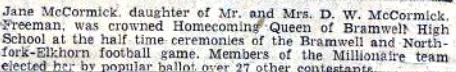 Jane McCormick was the BHS Varsity Queen for 1955.