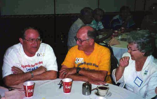 This photograph from the BHS Class '51 YR 2000 Breakfast at the Bluefield Holliday Inn features from BHS Class '50 Jim Vance and Billy Roe, along with Billy's wife, LaRue. The Roes traveled from Volcano, CA to attend the 50th reunion for Bramwell High School's Class '50.
