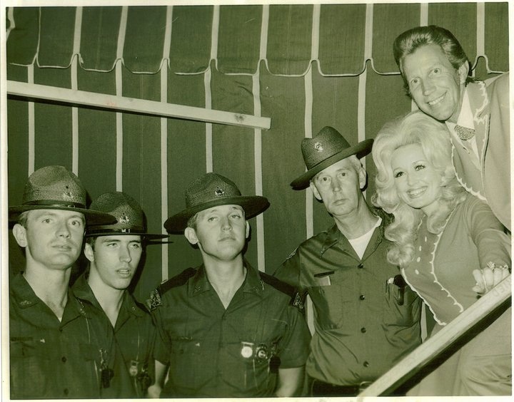 Left to Right Trooper Billy Ray Chafin, Trooper S. Nelson, Trooper Mac McCarty, Chief Richard Painter, Dolly Parton, Porter Wagner. . ( Material Furnished By: Darrell B. Bailey) |