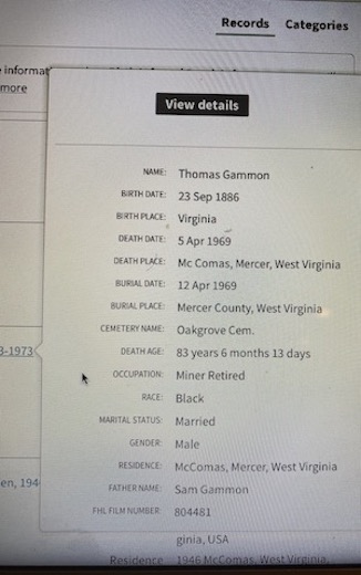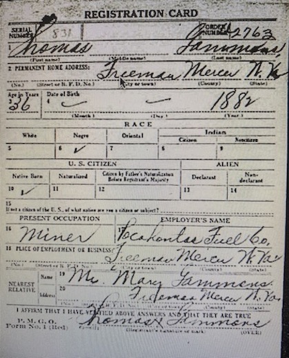 Pioneer Thomas Gammons worked at the Pocahontas Fuel company as one of the early miners. The entire Gammons family was born in McComas, West Virginia. He was born in McComas on September 23, 1886. Mr. Gammons passed away on April 1969 at the age of 83. His wife was Mary Gammons. His father was Sam Gammons. He was once a resident of Freeman, WV when he was 36 years old. In 1946 he was living in McComas, WV. He lived out his retirement in McComas, WV and is buried in the local Oakgrove Cemetery. Material Furnished By : Allison Gammons |