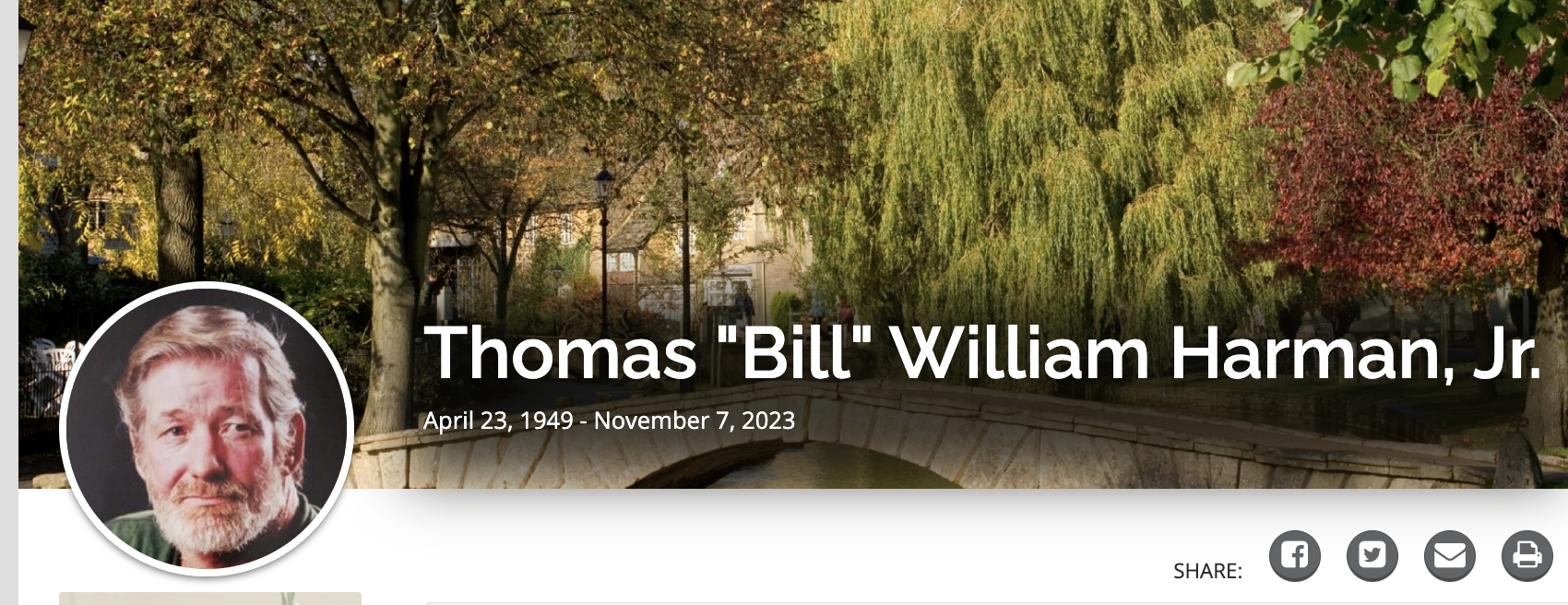 Thomas William “Bill” Harman, Jr. of Pocahontas, VA died November 7, 2023 following a long illness. He was born on April 23, 1949 to the late Thomas William Harman, Sr. and the late Claire Harman and lived most of his life in Bramwell, WV. He was a 1968 graduate of Bramwell High School and Mercer County Technical Center. He was known for his ability to “do anything” regarding electrical work, plumbing, mechanical, carpentry and masonry work. He worked for several people in the Bramwell area as a “jack of all trades.” He had a rare sense of humor and often left his friends scratching their heads from some of his witticisms. A daughter, Quannah, preceded him in death, as did his grandparent