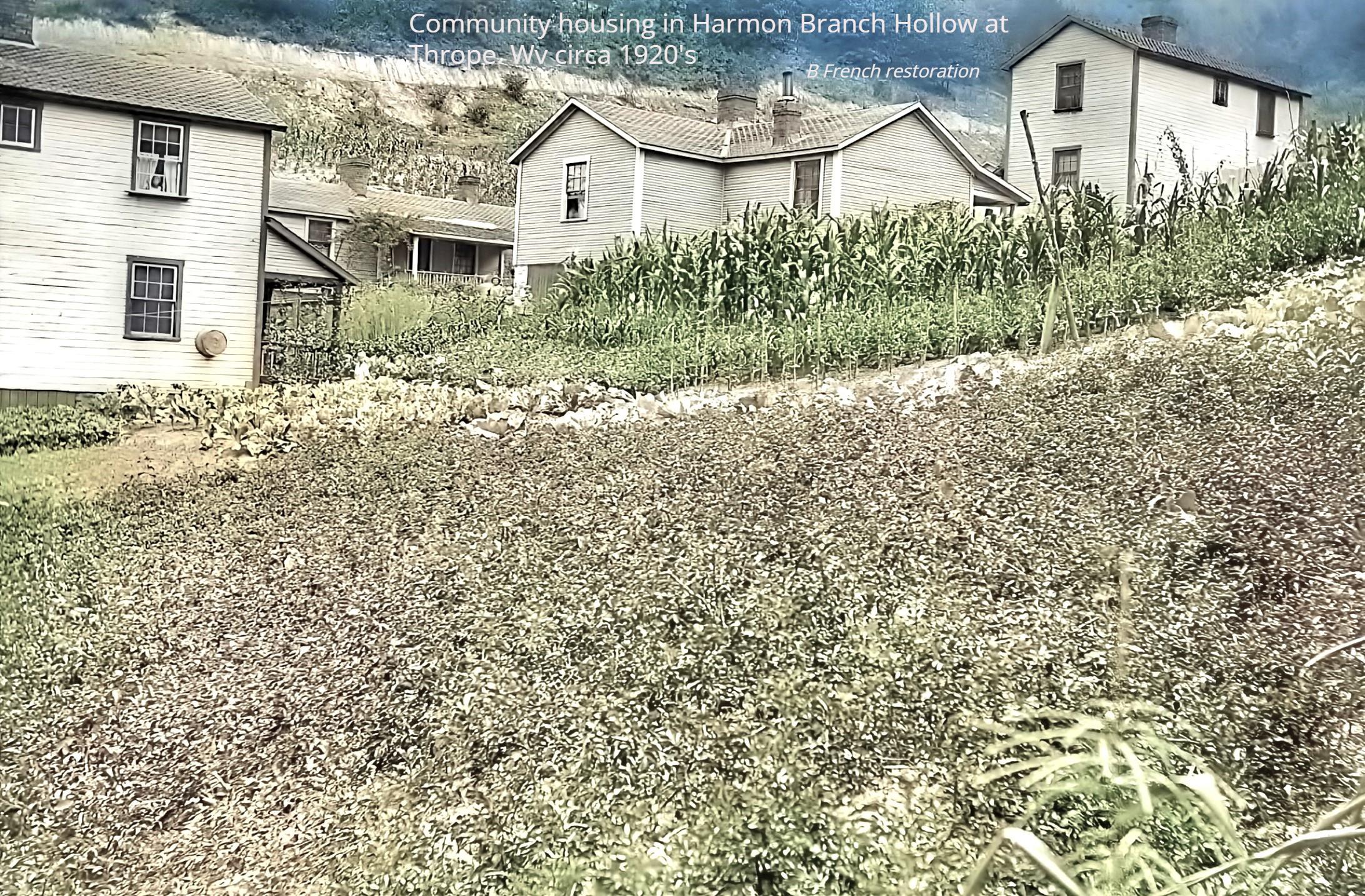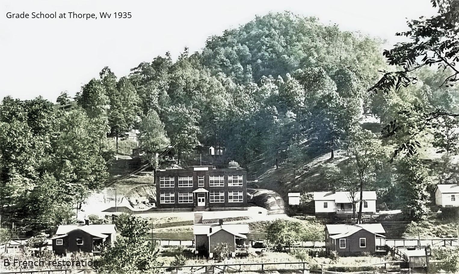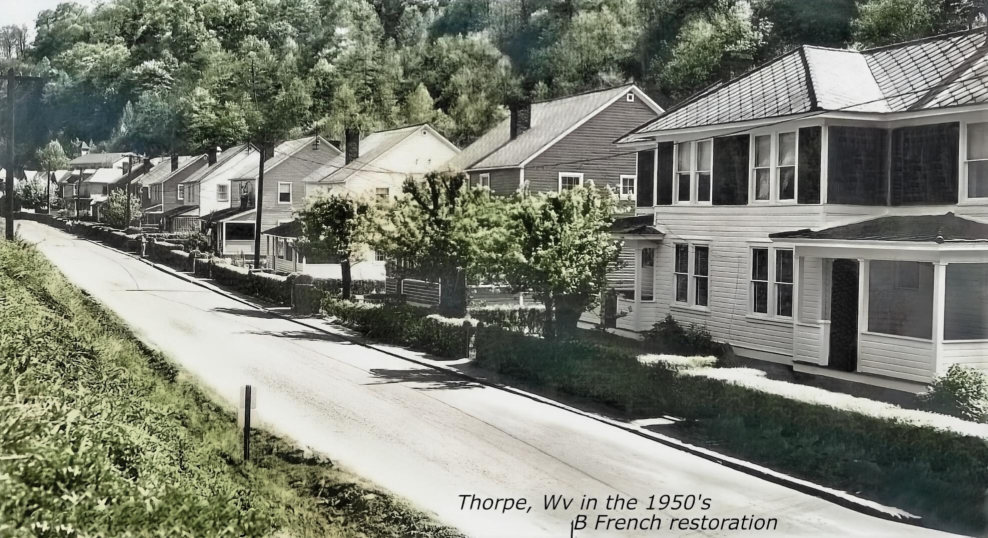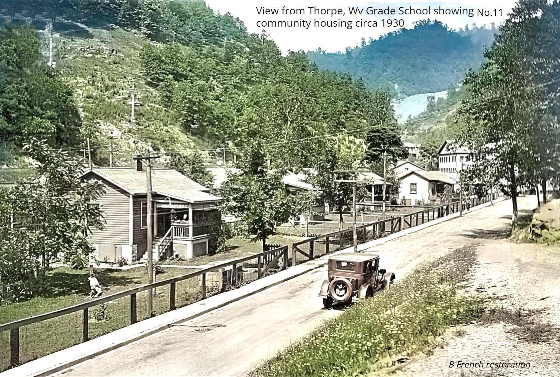 In 1902, the opening of multiple U. S. Coal & Coke Company mines and the construction of their supporting communities was well underway in McDowell County West Virginia. By 1904, the coal company had opened its No.4 mine, which was one of the twelve coal mining operations that would soon make up what was to become known as Gary Hollow. As with all of these mining operations, construction of a supporting community with homes for coal miners and their families near the No.4 mining complex was rapidly being developed. This coal camp community was originally given the name Jared but was changed to Thorpe when the post office opened there in 1906. Thorpe soon became a small "community town" with a large company store where your author once worked, a restaurant, five churches, a white and negro grade school, a Clubhouse (miners boarding house) and a Community Center that contained a barber shop, pool hall and a movie theatre. Many thanks to Alex Schust who published his book "Gary Hollow", where this and much more information on Thorpe can be found.