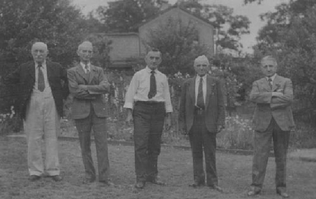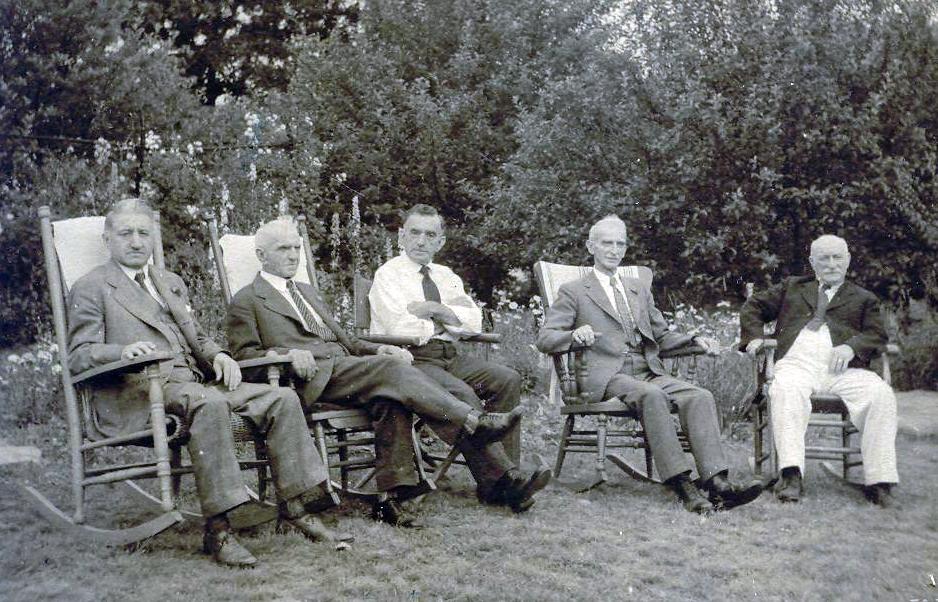 The five Toy Brothers are featured in this photograph. James Toy and Samuel A. Toy of the Historic Bramwell's Booth-Bowen Coal Company and Book-Keeping fame were brothers. The Toy brothers. L-R: Charlie, John, James, Samuel A. and Peter. This photo was taken at the Toy Family Farm in St. Petersburg, PA. Samuel A. Toy was named after his father Samuel Toy, SR. He died in 1893. There were five brothers and five sisters. The Booth-Bowen Coal Company book keeper, Samuel A. Toy is also featured at the address: Samuel A. Toy . (Material furnished by Bob Gallagher) |